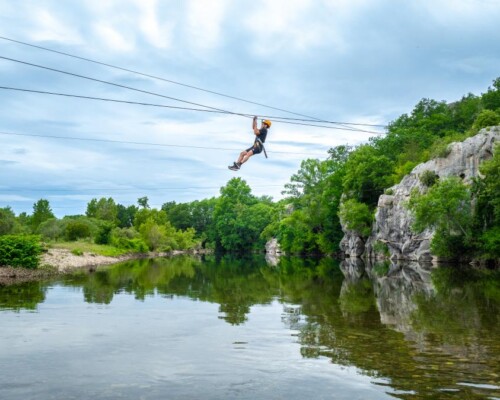 Accessible par une autre tyrolienne géante, notre parcours de Via Ferrata vous permet de découvrir cette activité de grimpe sur le flanc de la falaise en évoluant sur câbles et rondins ou autres ponts suspendus, le tout surplombant la rivière Chassezac pour une vue à couper le souffle.