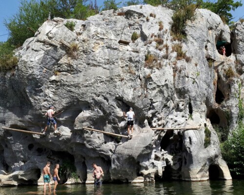 Klimpark in de Ardèche, in Grospierres, dicht bij Vallon Pont d’Arc